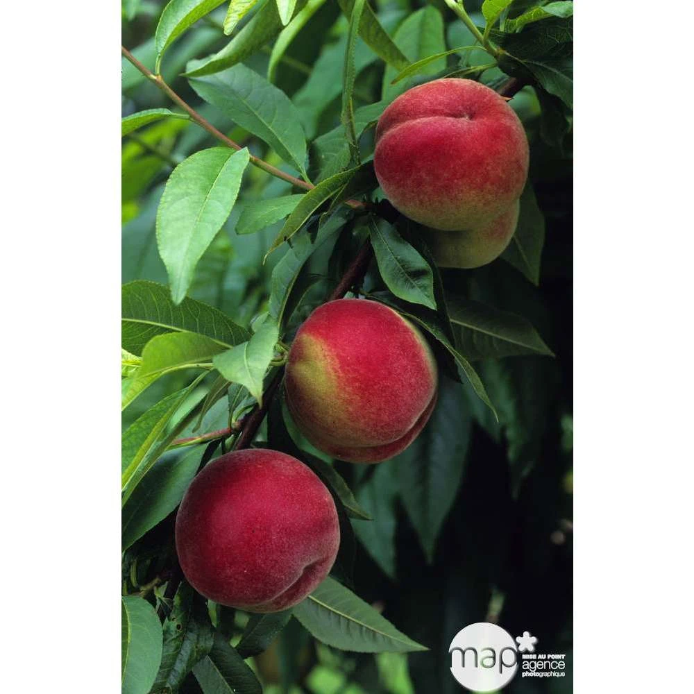 Prunus persica ‘Amsden’ est un arbre vigoureux ayant une bonne résistance à la cloque du pêcher. C’est une variété ancienne, américaine, du nom de son créateur qui a l’avantage d’être autofertile. Cette variété est très productive. Sa floraison est précoce donc il est préférable de planter cette variété dans des zones où les gelées printanières ne sont pas trop fréquentes. Les fruits sont précoces dès la fin juin, de taille moyenne, à peau bien colorée. La chair est blanche, acidulée, juteuse, moyennement savoureuse. Le noyau adhère à la chair, ce qui caractérise les pêches de type Pavie.
