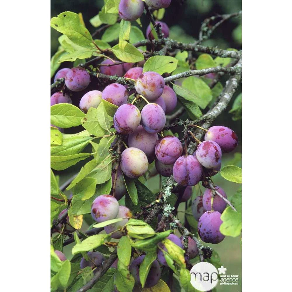 Cette variété ancienne, déjà connue en 1800, donne un arbre assez vigoureux, qui présente une bonne productivité. La floraison a lieu mi-avril, elle est plutôt tardive pour un prunier. En revanche, elle ne craint plus les gelées à cette période-là. La fructification a lieu début septembre. Les fruits obtenus sont de calibre moyen, violet foncé, granité ou marbré de fauve. Leur forme est arrondie et la pruine bleutée. La chair est verdâtre, fine, juteuse, très sucrée, et parfumée.